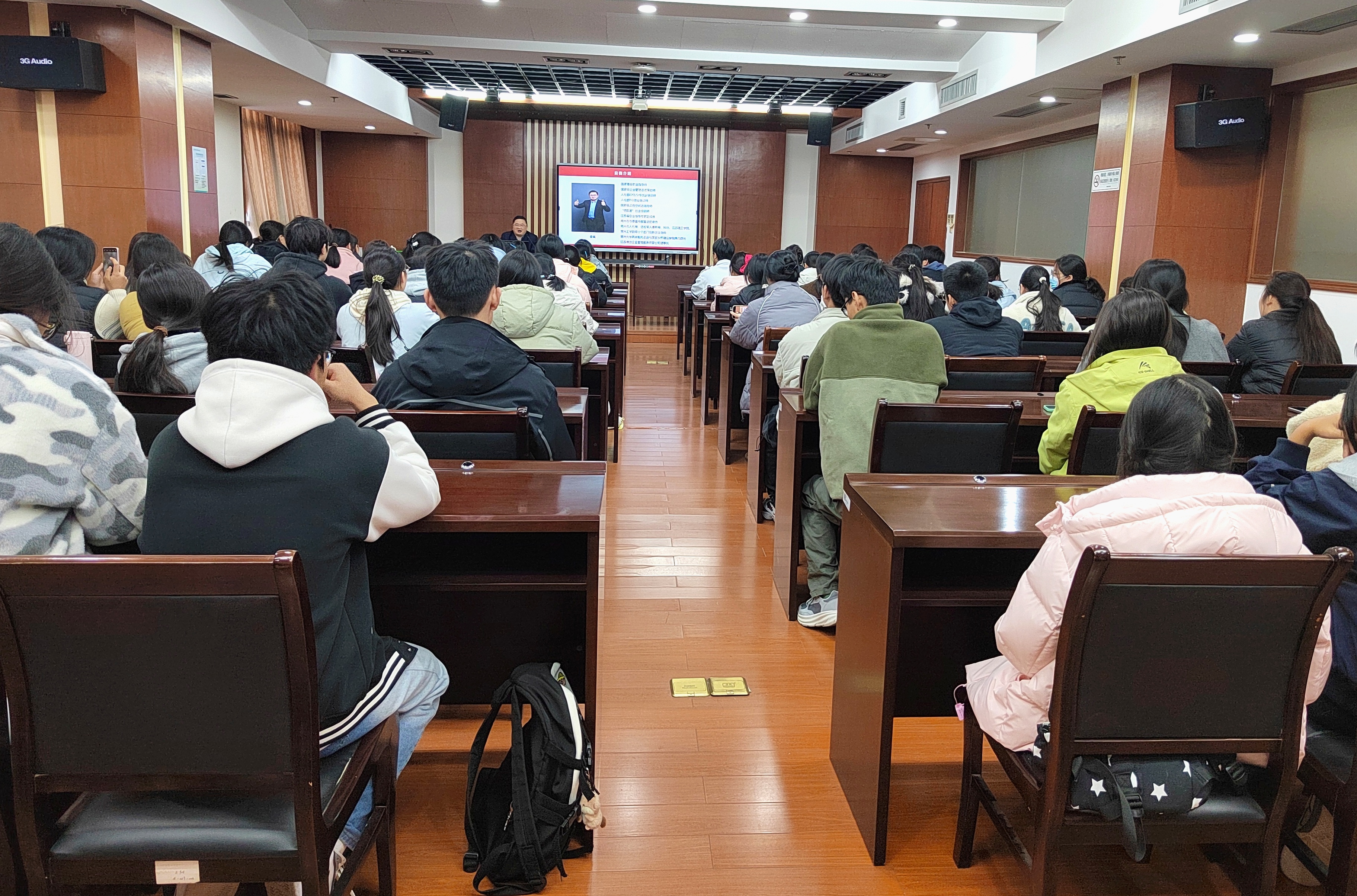 为助力学生备战2026校创新创业大赛,帮助校赛项目团队在江苏省职业院校创新创业大赛、“挑战杯”等赛事中实现新突破,11月18日下午3:50,学校在E906会议室举办2026年创新创业项目培育专题讲座,近百余名学生参加。